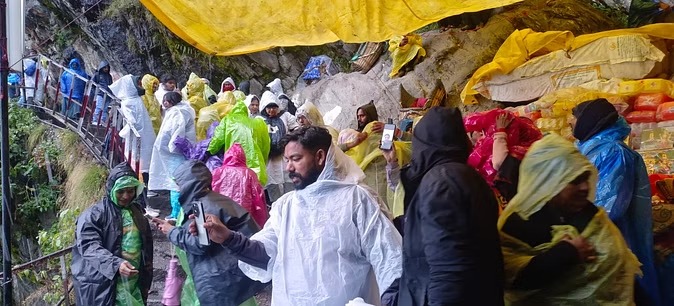 यमुनोत्री सहित यमुना घाटी में एक घंटे से झमाझम बारिश हो रही है। यमुनोत्री धाम के ऊपर बुग्यालों चोटियों सप्त ऋषि कुंड, बंदरपूंछ, कालिंदी पर्वत, गरुड़ गंगा टाप पर बर्फबारी जारी है। बारिश बर्फबारी के चलते तापमान में गिरावट आ गई। ठंड से लोग घरों में दुबके हैं।