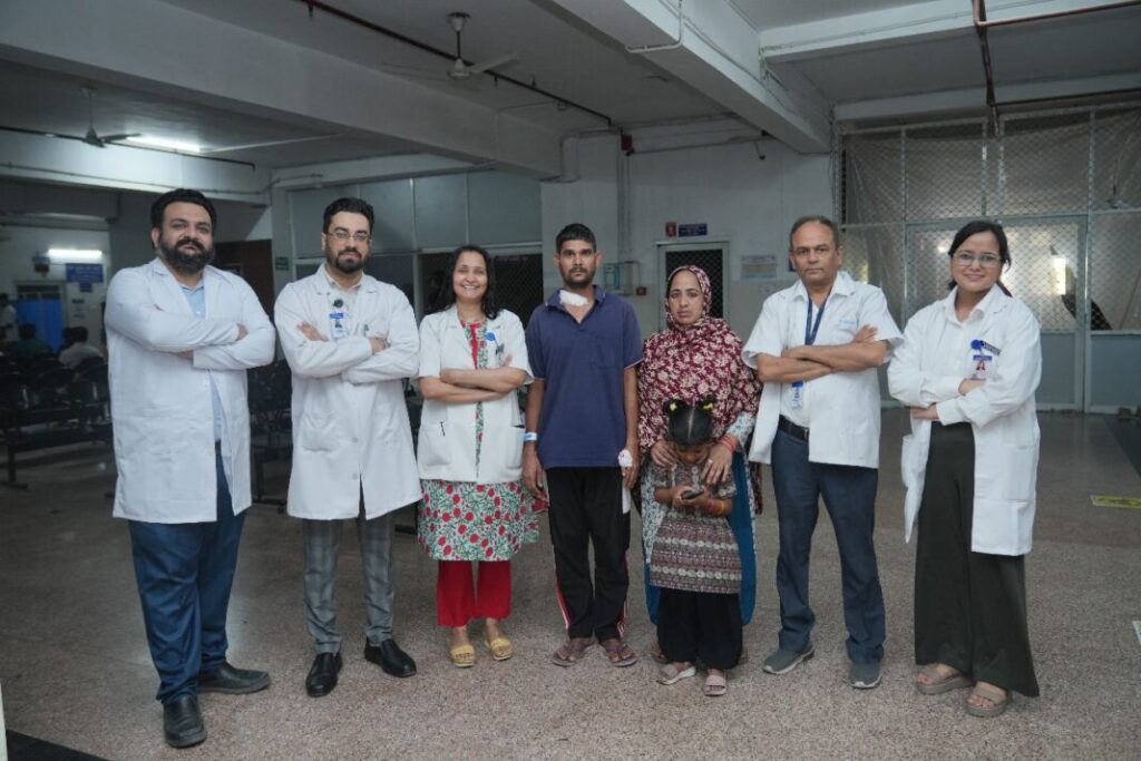 देहरादून। श्री महंत इन्दिरेश अस्पताल के ईएनटी और हेड-नेक सर्जरी विभाग के डाॅक्टरांे ने एक मरीज़ को नया जीवन दिया है। नाक कान गला रोग विभाग के डाॅक्टरों ने मरीज़ का जीवन रक्षक शल्य चिकित्सा कर एक मरीज को दूसरी जिंदगी दी। उत्तर प्रदेश के मंगलौर निवासी 45 वर्षीय पुरुष मरीज़ दिहाड़ी मजदूरी का काम करते हैं। एक निर्माण स्थल पर ट्रक से सामान उतारते समय दुर्घटनावश लोहे की छड़ मरीज़ की गर्दन के आर-पार हो गई। 4 मई 2025 को सहकर्मियों द्वारा उन्हें तुरंत पास के एक स्थानीय अस्पताल ले जाया गया। लेकिन सर्जरी की जटिलता और संभावित जटिलताओं को देखते हुए मरीज़ को श्री महंत इन्दिरेश अस्पताल में रैफर कर दिया गया।