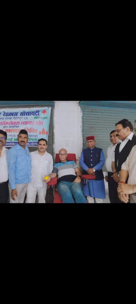 एमडीडीए कॉम्प्लेक्स व्यापार संघ ने एक स्वस्थ शिविर का आयोजन किया| जिसमे विशिष्ठ मुख्य अतिथि “श्री खजानदास जी”, मुख्य अतिथि श्री वंशीधर तिवारी उपाध्यक्ष एमडीडीए देहरादून, अतिथि श्री प्रदीप कुकरेती, राज्य आंदोलनकारी श्री अशोक वर्मा, पूर्व राज्यमंत्री ने शिविर का उद्घाटन किया| शिविर मे आईएमए ब्लड बैंक के सहयोग से 76 व्यापारियों तथा उनके सहयोगियों ने रक्तदान किया| मैक्स हॉस्पिटल के सहयोग से B.P., ECG, BMD की जाँच की गई तथा मैक्स हॉस्पिटल की तरफ से कार्डियोलॉजिस्ट तथा फिजीसीयन भी शिविर मे मौजूद रहे| टाइटन आई की तरफ से समस्त लोगों का आई चैकप किया गया| एमडीडीए कॉम्प्लेक्स व्यापार संघ ने रेड क्रॉस सोसाइटी देहरादून के साथ मिलकर कार्यक्रम मे उपस्थित सभी रक्तदान दाताओ को प्रमाणपत्र तथा स्मर्ती चिन्ह देकर सम्मानित किया| “श्रीखजानदास जी”, श्री वंशीधर तिवारी जी ने शिविर की भूरी- भूरी प्रशंसा की तथा एमडीडीए कॉम्प्लेक्स मे हो रही समस्याओ को जल्द निस्तारण करने का आश्वाशन दिया|
