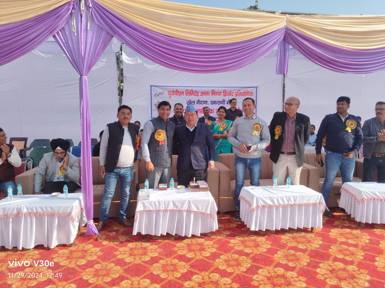 यूजेवीएन लिमिटेड द्वारा दो दिवसीय अंतर्निगमीय क्रिकेट प्रतियोगिता का आयोजन ढकरानी खेल मैदान में आज दिनांक 29 नवंबर से प्रारंभ हो गया। प्रतियोगिता में निगम की गंगा वैली, यमुना वैली, भागीरथी वैली तथा देहरादून मुख्यालय की टीमें प्रतिभाग कर रही हैं। दो दिवसीय इस प्रतियोगिता का उद्घाटन आज दिनांक 29 नवंबर को मुख्य अतिथि उत्तराखंड पावर ट्रांसमिशन कार्पोरेशन लिमिटेड के निदेशक परिचालन जी.एस. बुदियाल द्वारा किया गया। इस अवसर पर महाप्रबंधक प्रवीन कुमार जौहरी, उपमहाप्रबंधक अनित अमोली, मनदीप सिंह, हेमंत श्रीवास्तव, ए.के. सिंह एवं अधिशासी अभियंता दीपक आर्य, यशपाल सिंह बिष्ट, उमाकांत पांडेय, सुखजीत सिंह, अरविंद कुमार, अमित रंजन, वरिष्ठ लेखाधिकारी अहसान मोहम्मद, सहायक अभियंता भूपेंद्र फर्त्याल के साथ ही नीतू राणा, अंकिता रौथाण, मीना सहित बड़ी संख्या में निगम के अधिकारी, कर्मचारी एवं क्षेत्र की खेलप्रेमी जनता उपस्थित रही। प्रतियोगिता का प्रथम मैच यमुना वैली तथा गंगा वैली की टीमों के मध्य खेला गया जिसमें यमुना वैली ने पहले बल्लेबाजी करते हुए 20 ओवर में 07 विकेट खोकर 171 रन बनाए। यमुना वैली की ओर से संतोष ध्यानी ने 41 रन तथा कप्तान सुनील ठाकुर ने 40 रन की पारी खेली। गंगा वैली की ओर से कासिम ने 2 विकेट लिए।