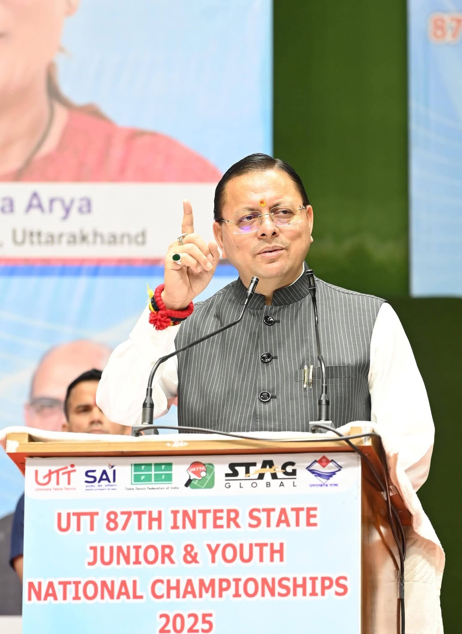 मुख्यमंत्री श्री पुष्कर सिंह धामी जी ने देहरादून में 87वीं इंटर स्टेट जूनियर एवं यूथ नेशनल टेबल टेनिस चैंपियनशिप-2025 का शुभारंभ किया एवं खिलाड़ियों के साथ टेबल टेनिस खेलकर उनका उत्साहवर्धन किया।
