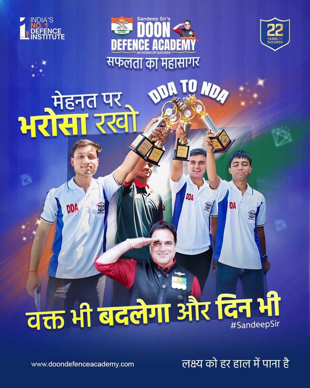 इस गौरवशाली परिणाम में अकादमी के होनहार कैडेट्स पारस मान, राज मंगलम, दर्शिल रंकावत, निखिल यादव, शुभ कौशिक, कमलेश यादव और प्रज्ञा डिमरी सहित अनेक अन्य छात्रों ने अपनी जगह पक्की की है। इन सभी सफल चयनित ‘DDA डायमंड्स’ ने अपनी कड़ी मेहनत और संस्थान के अनुशासित मार्गदर्शन के दम पर भारतीय सशस्त्र बलों में अधिकारी बनने की दिशा में एक बड़ा कदम बढ़ाया है।