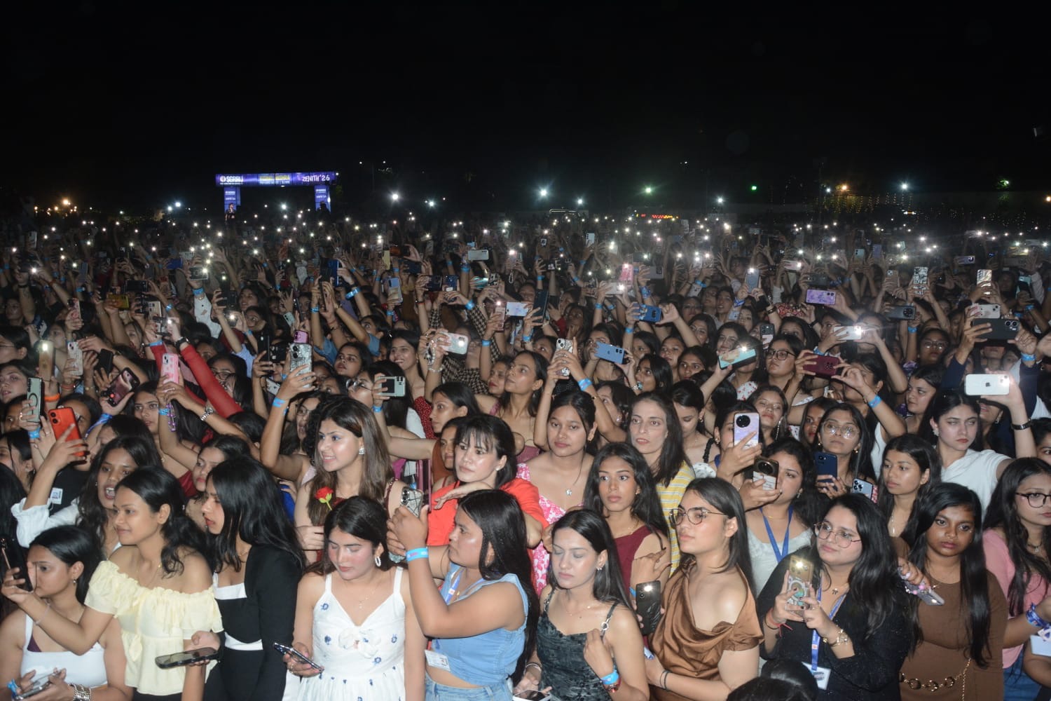 बालीवुड गायक विशाल मिश्रा के सुरों से सजी स्टार नाइट में रोमांस का ऐसा जादू छाया कि पूरा माहौल रोमांटिक हो उठा। अपनी भावपूर्ण आवाज और दिल को छू लेने वाली प्रस्तुति के लिए मशहूर विशाल मिश्रा ने स्टेज पर एक के बाद एक कई शानदार परफॉर्मेंस देकर दर्शकों को मंत्रमुग्ध कर दिया। “पहले भी मैं”, “कैसे हुआ”, “जानिये”, “तेरी हो गईयां”, “दिल झूम”, “जिआल ए मिस्किन”, “चल तेरे इश्क में”, “मांझा” और “क्या बताऊं तुझे” जैसे सुपरहिट लव सॉन्ग्स की प्रस्तुति ने खासतौर पर युवाओं और कपल्स के दिलों में अलग ही उत्साह भर दिया। जेनजी जनरेशन की भावनाओं, उनके प्यार के अंदाज और आधुनिक रिश्तों की नजाकत को बखूबी दर्शाते हुए विशाल मिश्रा ने अपनी गायकी से हर दिल को जोड़ दिया। उनकी हर प्रस्तुति पर दर्शक झूम उठे और मोबाइल फ्लैशलाइट्स के बीच बना रोमांटिक माहौल देर रात तक यादगार बना रहा।