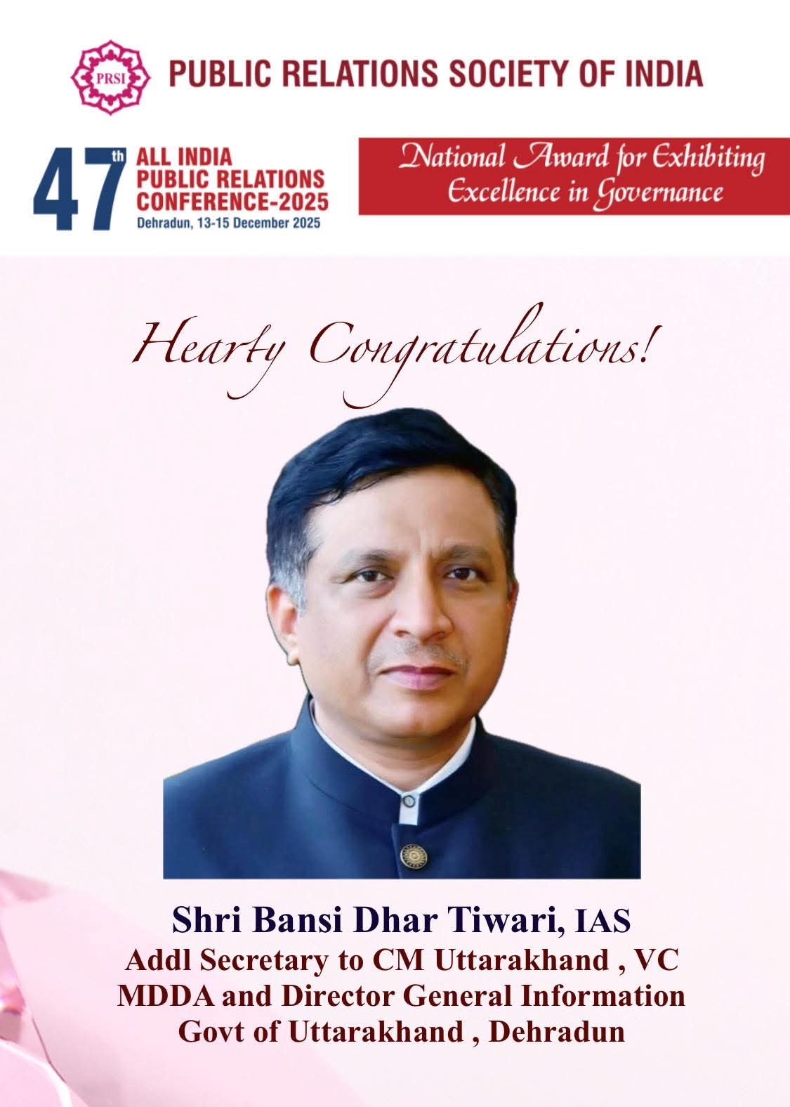 बंशीधर तिवारी उत्तराखंड के ऐसे IAS अधिकारी हैं, जिन्हें उनकी साफ़ सोच, असरदार कामकाज और पारदर्शी व जन-केंद्रित शासन के लिए जाना जाता है। अपने लंबे करियर में उन्होंने जिला प्रशासन, विभागीय जिम्मेदारियों और राज्य स्तर की नीतियों में महत्वपूर्ण भूमिका निभाई है। उनकी कार्यशैली हमेशा तेज़, सरल, प्रभावी और विकास पर केंद्रित रही है। यह पुरस्कार उनके समर्पण और अच्छी प्रशासनिक क्षमता की सच्ची पहचान है।