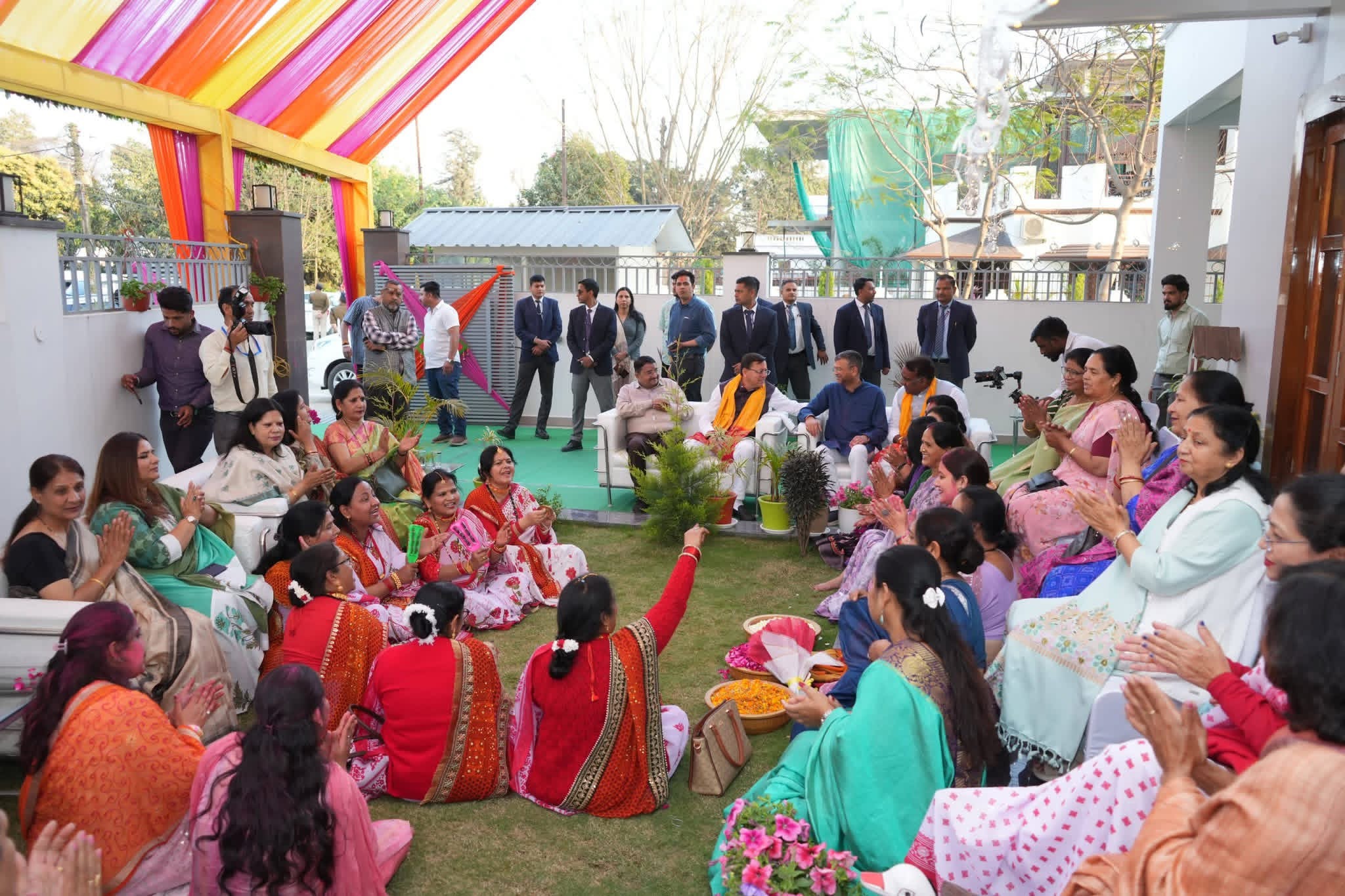 होली के मधुर लोकगीतों ने पूरे वातावरण को सांस्कृतिक रंगों से सराबोर कर दिया। उपस्थित महिलाओं ने पारंपरिक गीतों के माध्यम से उत्सव में विशेष रंग भर दिए, जिससे माहौल भक्तिमय और आनंदमय हो उठा।