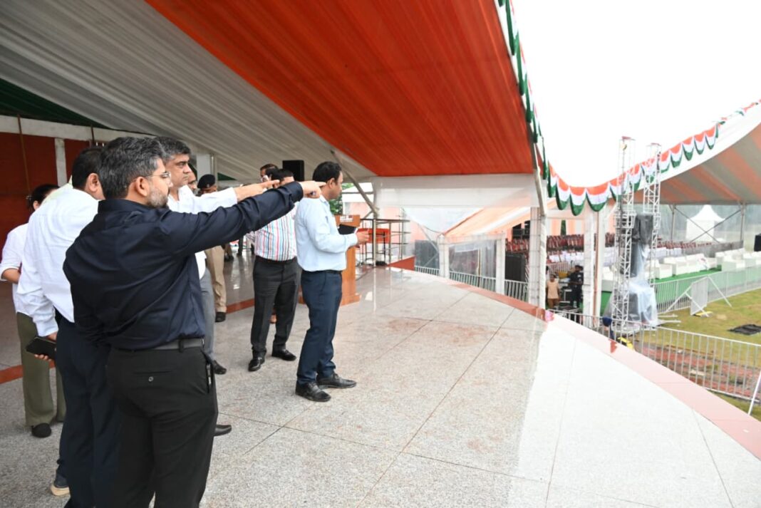 देहरादून परेड ग्राउंड में स्वतंत्रता दिवस के मौके पर राज्य स्तरीय कार्यक्रम आयोजित किया जाएगा। कार्यक्रम में प्रदेश के मुख्यमंत्री प्रतिभाग करेंगे। जिला प्रशासन कार्यक्रम की भव्य तैयारियों में जुटा है। जिलाधिकारी के निर्देशों पर मुख्य विकास अधिकारी अभिनव शाह ने बुधवार को परेड ग्राउंड में व्यवस्थाओं का निरीक्षण करते हुए नोडल अधिकारियों को सभी तैयारियां समय से पूर्ण करने के निर्देश दिए। सीडीओ ने कहा कि स्वतंत्रता दिवस समारोह में मुख्य मंच से लेकर पुलिस परेड, ध्वजारोहण, स्वतंत्रता संग्राम सेनानी, राज्य आंदोलनकारी, गणमान्य नागरिक, महानुभावों एवं मीडिया प्रतिनिधियों के लिए समुचित व्यवस्थाएं सुनिश्चित की जाए। कहीं पर भी कोई कमी न रहे, इसका विशेष ध्यान रखा जाए। समारोह में मुख्यमंत्री द्वारा स्वतंत्रता संग्राम सेनानियों, राज्य आंदोलनकारियों, खिलाड़ियों और उत्कृष्ट सेवा के लिए पुलिस एवं विभागीय अधिकारियों व कर्मचारियों को सम्मानित किया जाएगा। समारोह में आयोजित कार्यक्रमों का सजीव प्रसारण भी किया जाएगा।