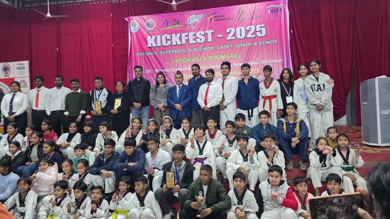देहरादून: राजधानी देहरादून में जिला *ताइक्वांडो एवं पैरा-ताइक्वांडो एसोसिएशन,* देहरादून के तत्वावधान में आयोजित दो दिवसीय ताइक्वांडो प्रतियोगिता “किक-फेस्ट 2025” का समापन 23 दिसंबर को टाचूड स्कूल, सहस्त्रधारा रोड में सफलतापूर्वक हुआ। इस प्रतियोगिता में खिलाड़ियों ने बढ़-चढ़कर हिस्सा लिया और अपनी प्रतिभा का प्रदर्शन किया।