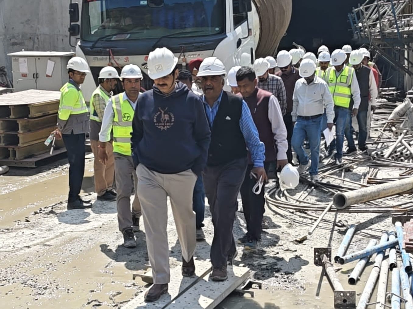 प्रबंध निदेशक ने परियोजना की वर्तमान प्रगति की समीक्षा करते हुए आगामी कार्यों के रोडमैप पर विस्तार से चर्चा की। उन्होंने स्पष्ट निर्देश दिए कि सभी निर्माण कार्य निर्धारित समय-सीमा के अनुरूप तीव्र गति से संचालित किए जाएं। इसके लिए पर्याप्त मानव शक्ति, मशीनरी एवं अन्य आवश्यक संसाधनों को कार्यस्थल पर तैनात करने के निर्देश भी दिए गए।