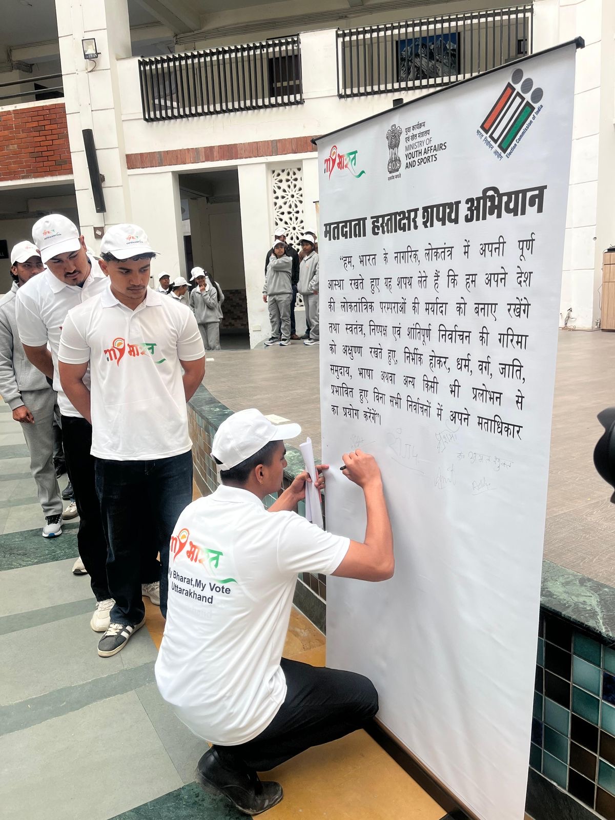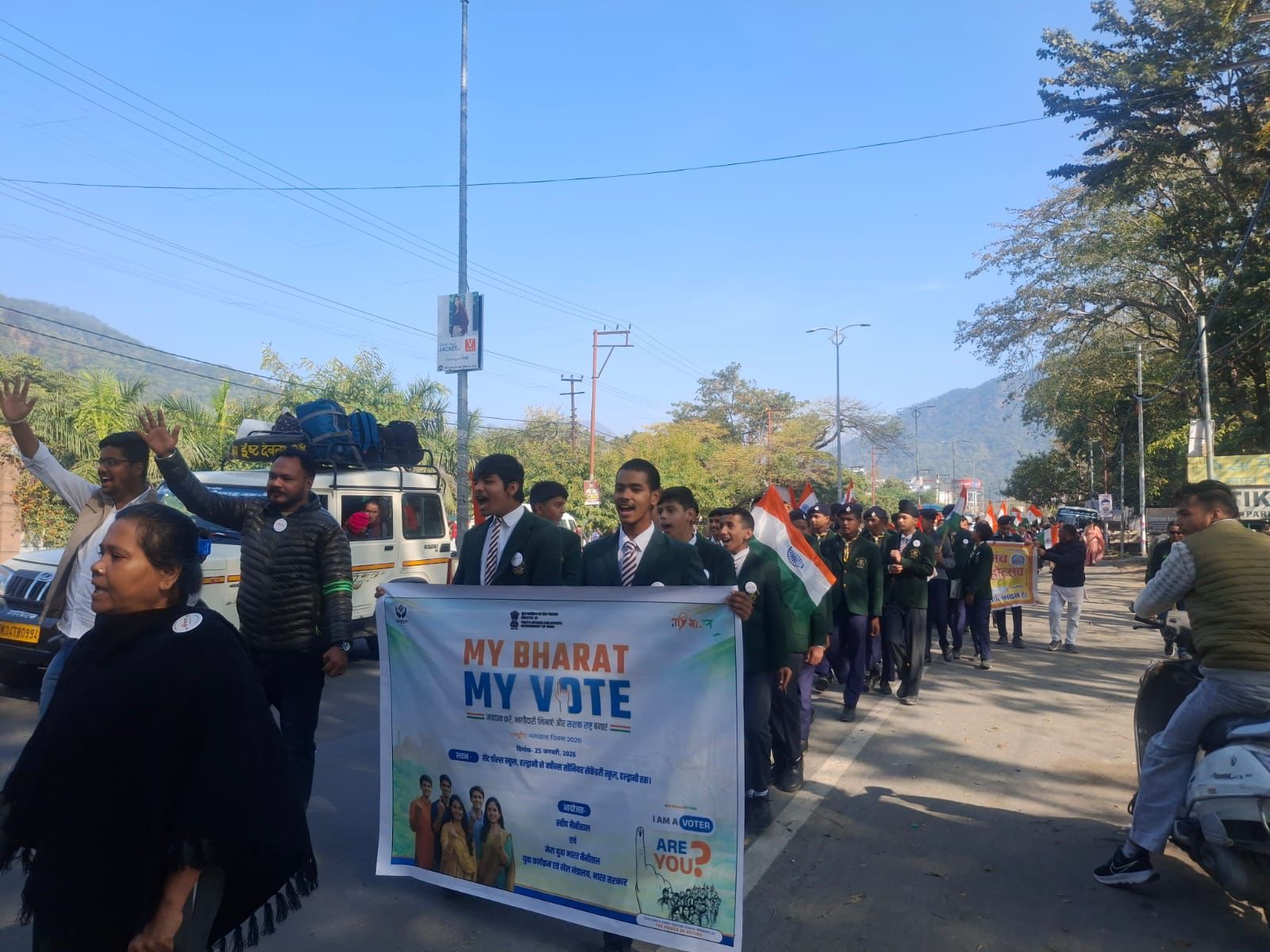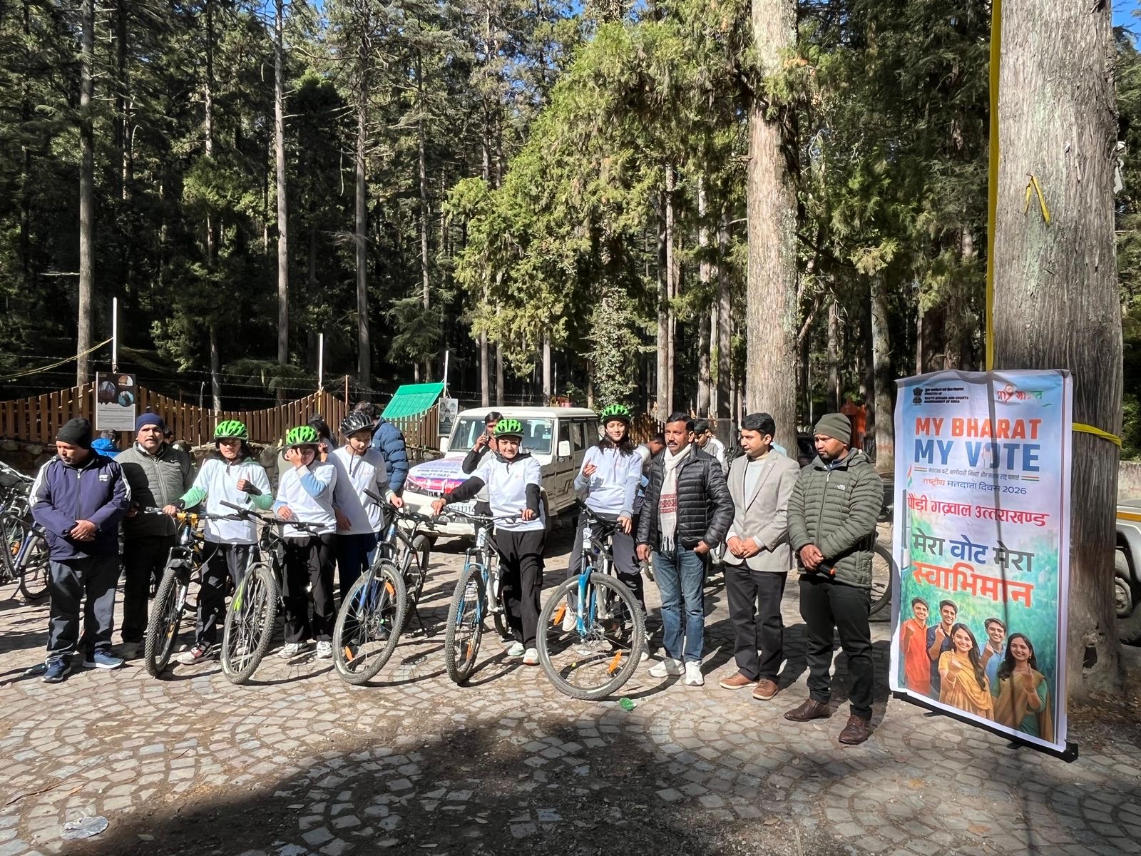 रविवार, 25 जनवरी 2026 को मेरा युवा भारत (MY Bharat) उत्तराखंड, युवा कार्यक्रम एवं खेल मंत्रालय भारत सरकार द्वारा राष्ट्रीय मतदाता दिवस के उपलक्ष्य पर प्रदेश में मतदाता जागरूकता कार्यक्रम के आयोजन किेए गए। जिसके अंतर्गत देहरादून, टिहरी गढ़वाल, पौड़ी गढ़वाल में पदयात्राएं और साइकिल रैली निकाली गईं। जिला खेल कार्यालय नरेंद्र नगर टिहरी गढ़वाल के सौजन्य से पूर्णानंद स्टेडियम से भद्रकाली, भद्रकाली से पूर्णानंद वापसी तक साइकिल रैली का आयोजन किया गया। पौड़ी गढ़वाल के कण्डोलिया पार्क में सहायक निर्वाचन अधिकारी एस०ए०एल० शाह ने युवाओं को मतदाता शपथ दिलाई। नैनीताल में पदयात्रा का शुभारंभ सेंट पॉल्स स्कूल, काठगोदाम से हुआ, जो क्वीन्स सीनियर सेकेंडरी स्कूल, हल्द्वानी तक निकाली गई।