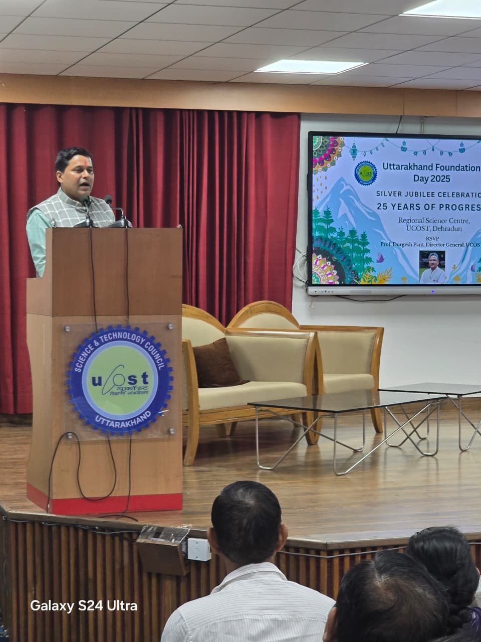 यूकोस्ट के महानिदेशक प्रो. दुर्गेश पंत ने अपने संदेश में उपस्थित अतिथियों को शुभकामनाएँ दीं और विद्यार्थियों तथा समाज में वैज्ञानिक शिक्षा और जागरूकता प्रसारित करने में यूकोस्ट और केंद्र की भूमिका की सराहना की। उन्होंने राज्य के विकास के लिए नवाचार को बढ़ावा देने और स्थानीय ज्ञान को सशक्त बनाने की आवश्यकता पर बल दिया।